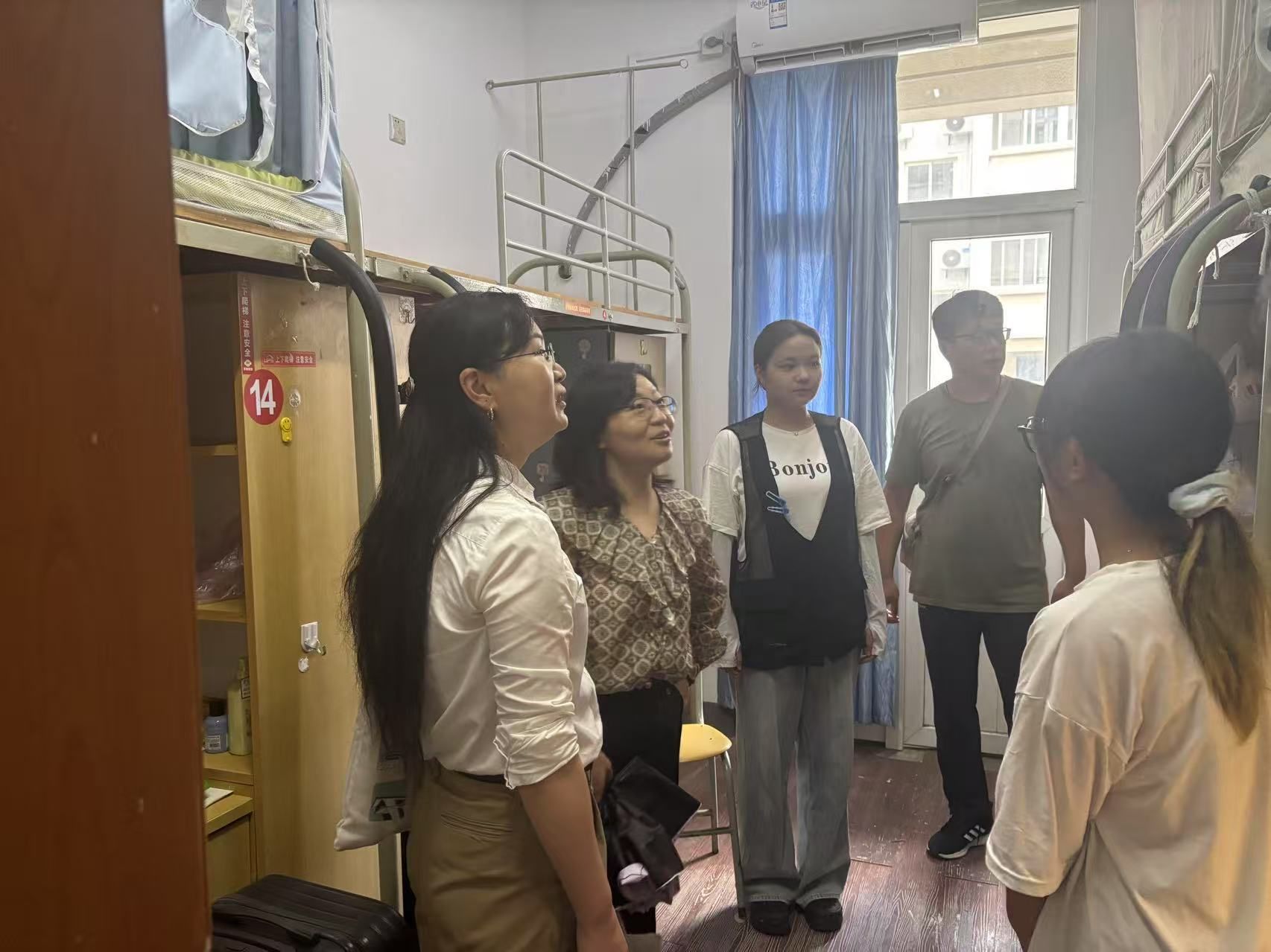 走访中,刘颖书记与同学们亲切交谈,询问大家的进校感受、行李安置及生活需求。仲巧林副书记叮嘱大家注意宿舍安全与卫生,和睦相处,建立良好的宿舍关系。肖密老师和孙绪华老师则结合工作经验,为新生提供校园生活指南,从食堂就餐、图书馆借阅到社团报名,细致入微地讲解让新生们倍感安心。