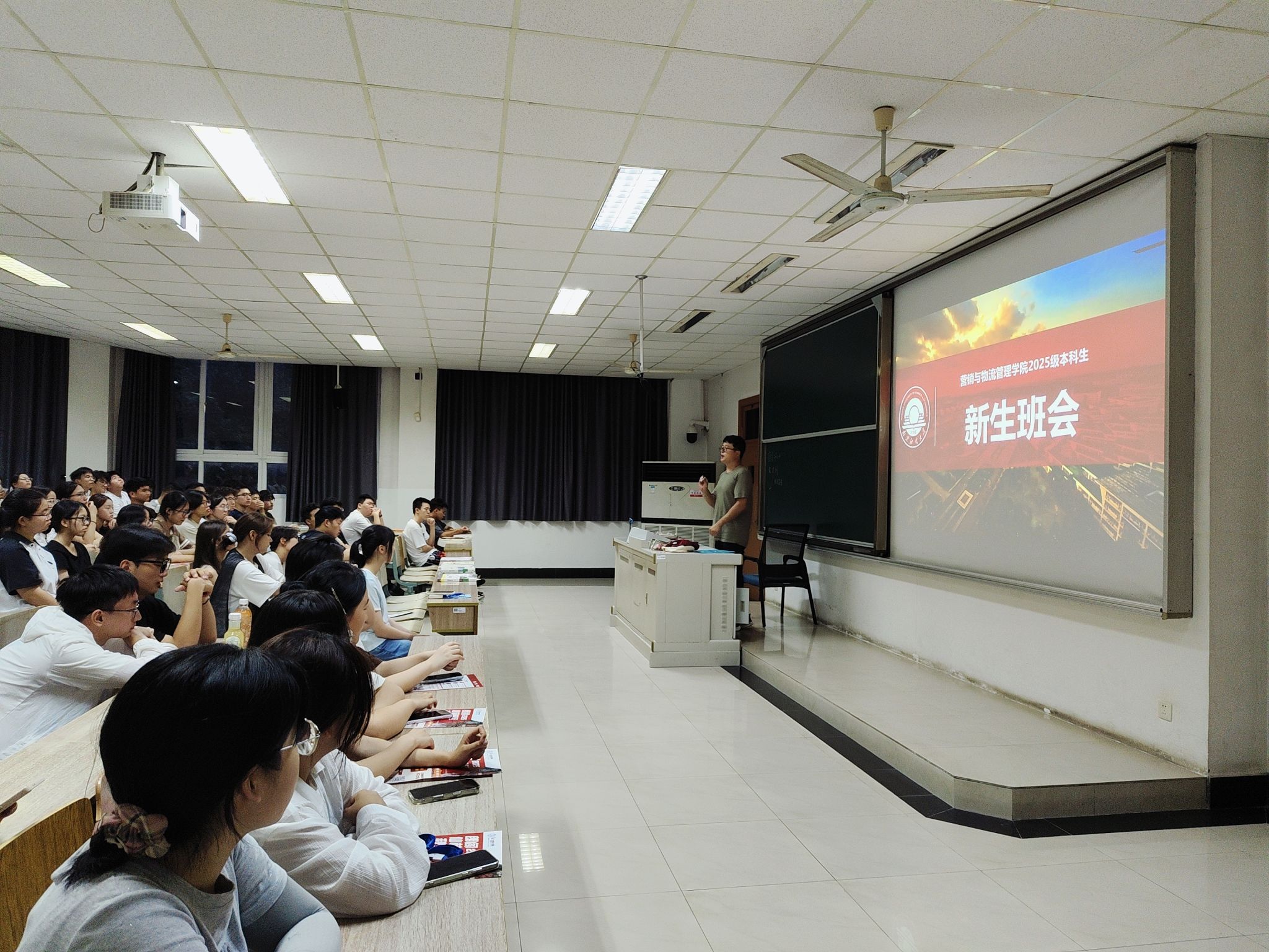 辅导员孙绪华老师以幽默的语言向大家分享了辅导员工作期间的趣事,鼓励新生敞开心扉、主动交流。他结合近期的工作做了详细安排,也希望同学们在班级助理、临时负责人带领下:一要尽快结合兴趣确立方向;二要平衡学习与实践,用活动锻炼能力;三要保护人身财产安全。