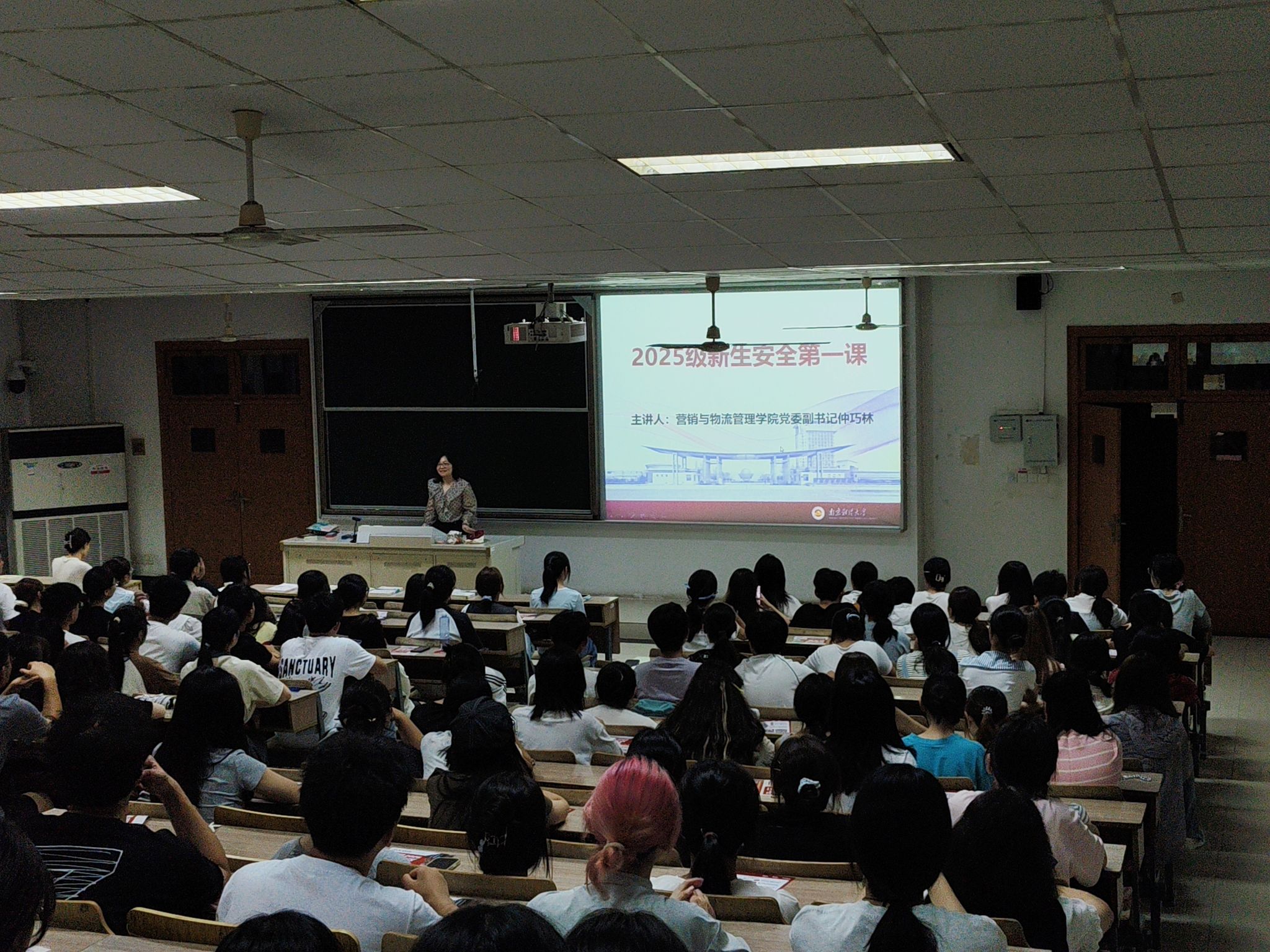 学院党委副书记仲巧林结合诸多鲜活案例警示安全,为新生上了“安全第一课”,并详细介绍了常见的诈骗套路,如虚假中奖、网络刷单、冒充客服、AI诈骗等,叮嘱同学们要提高警惕,保护好个人信息和财产安全;随后,她聚焦新生适应与规划,鼓励大家尽早确立目标,积极参加实践活动,科学规划,锻炼综合能力,让大学生活更加充实有意义。