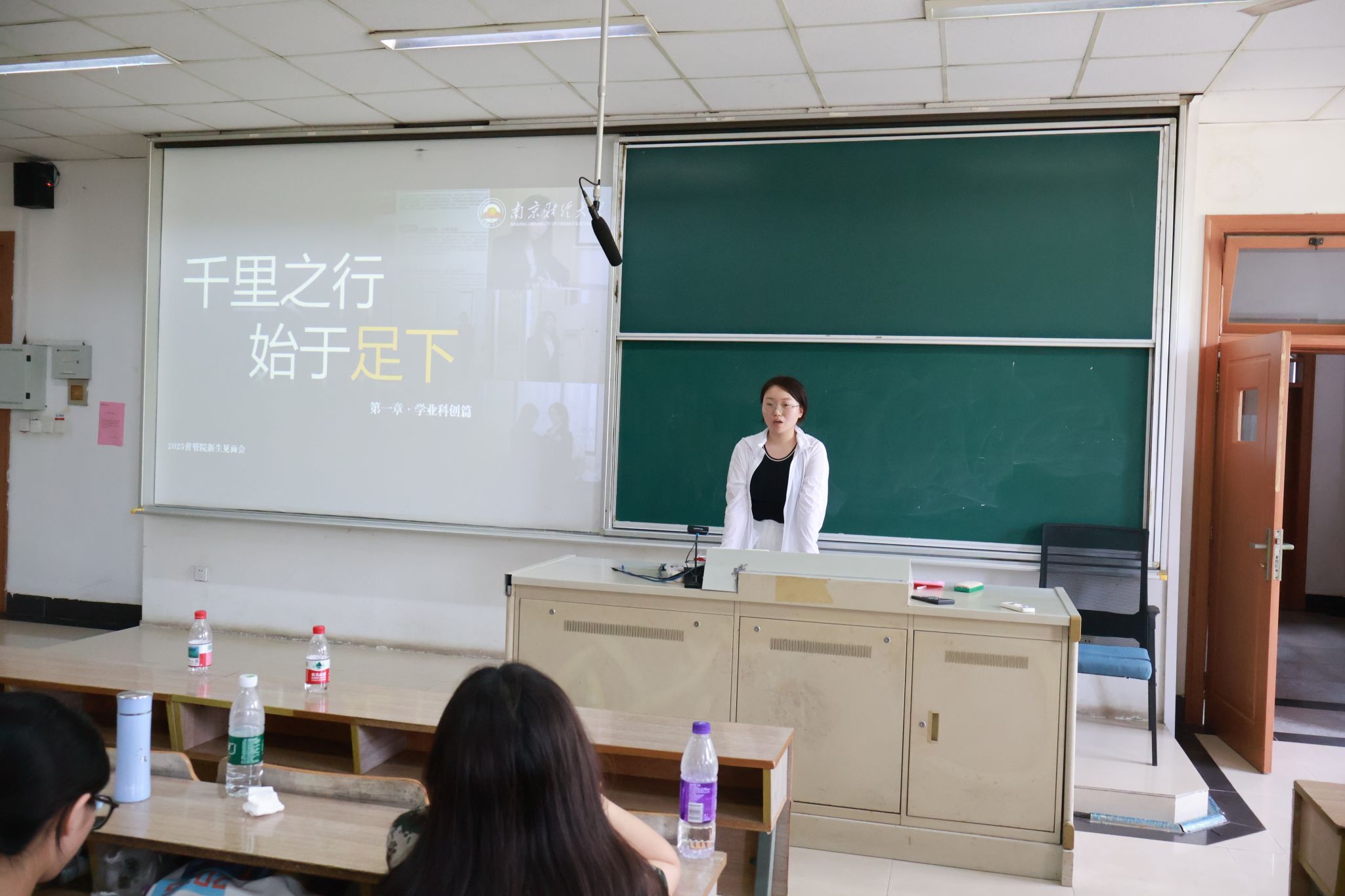 第二个环节“学长学姐说”。物流2202班陈小蕊同学以自身清晰的学业规划为蓝本,分享如何合理安排时间,平衡学习与生活,并分享了支教经历,鼓励大家投身社团活动,锻炼综合能力;广告2201刘姝均同学围绕学业科创为大家分享,在学好专业知识同时,积极参与竞赛、实践以及志愿服务。她推荐麦田数字影像工作室这一平台,鼓励大家在实践中积累经验,在创新中突破自我;2016级校友、谦达教育仙林分校校长赵钰博学长分享了自己的创业故事,他建议学弟学妹们尽早确定目标并努力追求,明确的目标是成功的第一步,只有对自己的未来有清晰的认识,才能在职业生涯中找准方向,实现人生价值。他希望同学们能够珍惜大学时光,夯实学业,扎实做事,踏实做人,根据自身情况,规划好独属于自己的人生之路,无论是创业还是就业,做好充分准备,抓住机遇,勇敢追梦。同时他还就大学人际交往、实习实践为大家答疑解惑,结合当前就业形势,深入剖析了专业就业规划的重要性,还介绍了企业选拔人才的标准,为大家未来职业发展指明了方向。