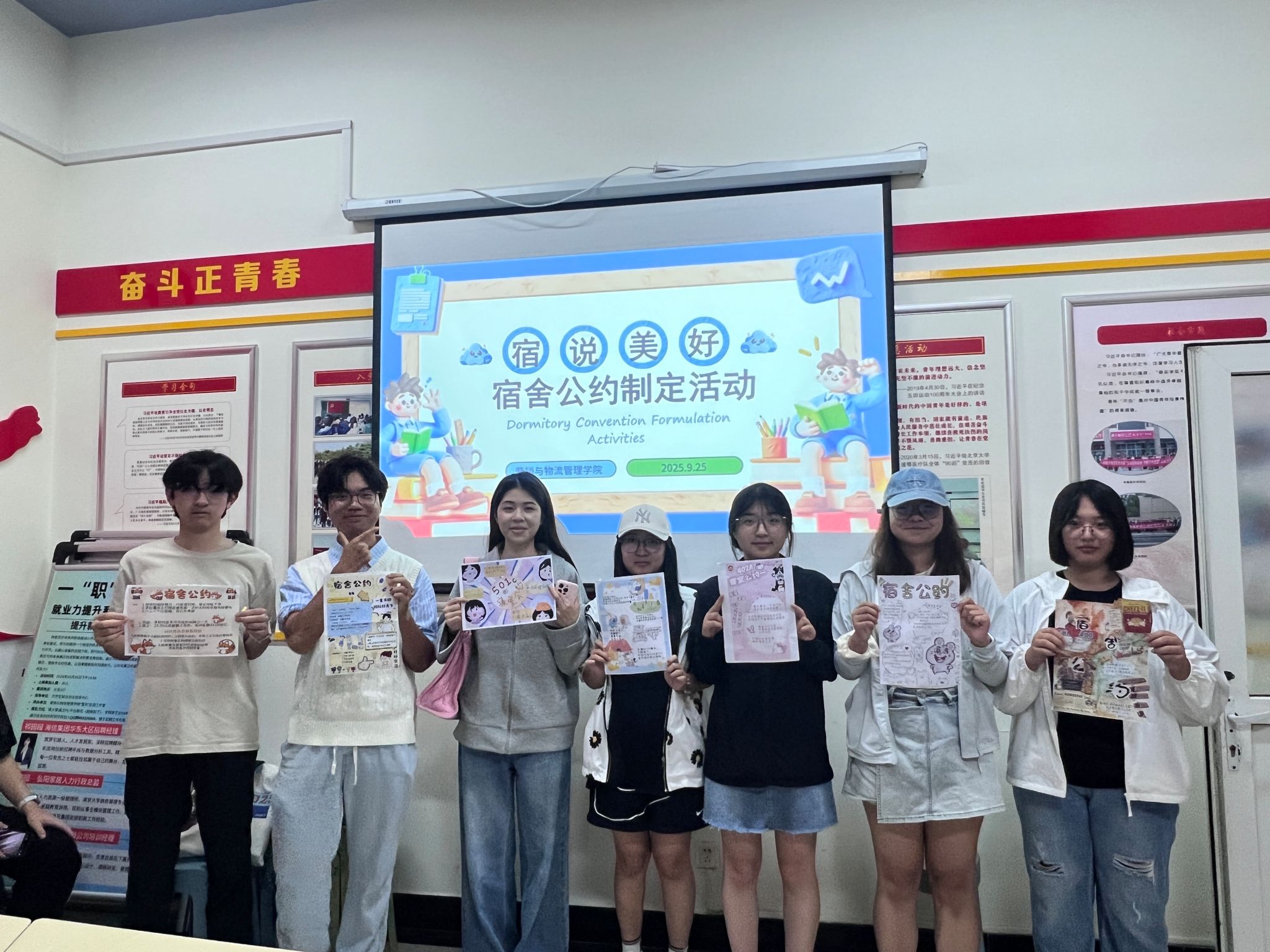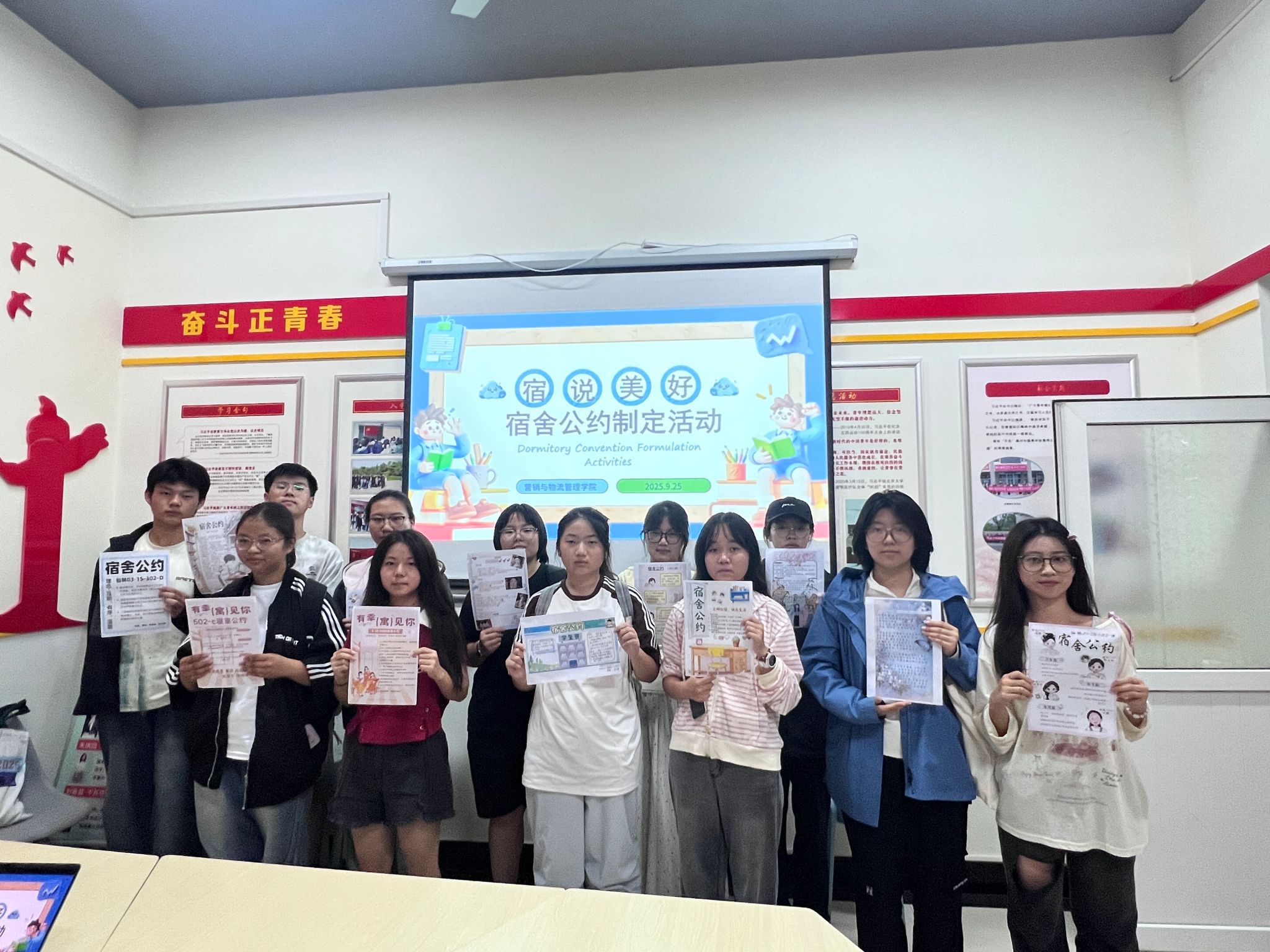 为营造安全、文明、和谐的宿舍生活环境,培养学生自我管理意识,9月25日12:30,营销物流管理学院在中苑8号站“党员先锋营”学生工作站开展“宿说美好·约绘未来”宿舍公约制定评比活动,2025级全体新生宿舍参赛。